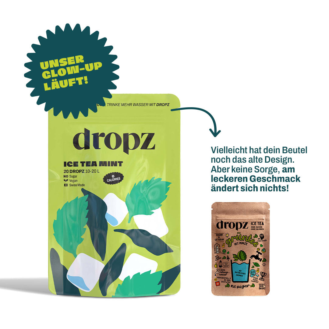 Un dropz suffit pour 250-500 ml d'eau - selon l'intensité du goût que tu souhaites obtenir.