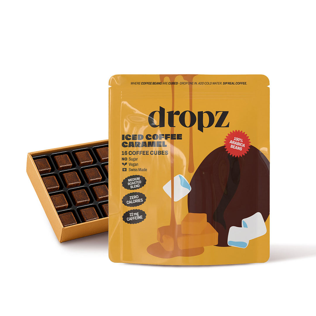 Café 100 % arabica avec une touche de caramel, transformé en cube.