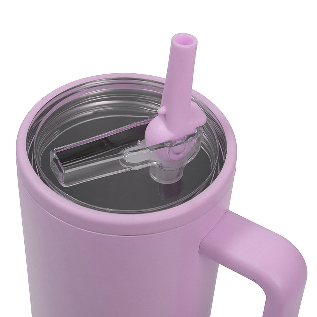 Fais l'expérience du confort ultime en déplacement : le tumbler en acier inoxydable de 1.1L avec anse et couvercle à paille t'accompagne dans toutes tes activités. Que ce soit sur le chemin du travail, lors d'une séance d'entraînement ou en voyage, il garde ta boisson sûre, fraîche et à portée de main avec style.