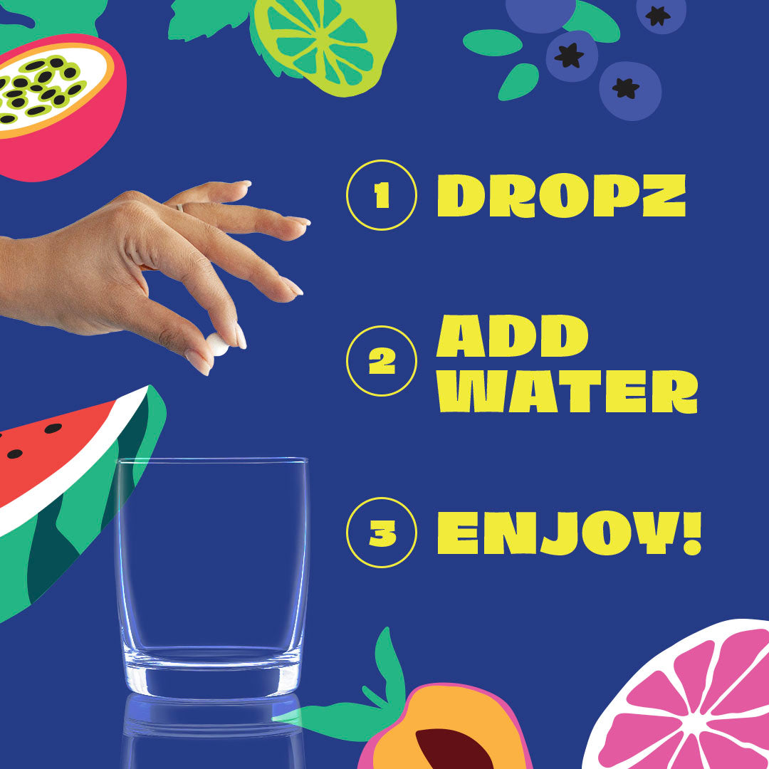 Non đ«âš Dropz ne contient ni sucre, ni calories - seulement du goĂ»t pur Ă partir d'ingrĂ©dients naturels.